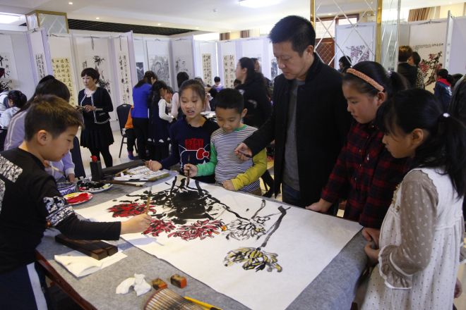 林阳院长介绍了自己的成长经历,送给学生3个词:兴趣、专注、坚持。白彬华老师风趣幽默地给学生介绍了自己的学习经验,送给学生4个字“勤学善思”。他们鼓励学生练好书法,学好美术,成长为具有鉴赏能力和审美能力的高素质人才。