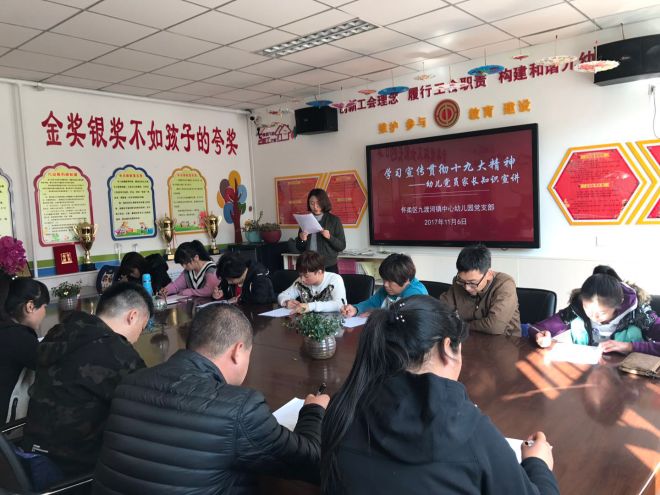 11月6日,九渡河镇中心幼儿园组织部分幼儿家长专题开展学习宣讲“十九大”知识问卷答题活动。