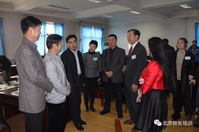 北京市教委人事处副处长邓永卫、市教育学院干训中心副主任柳立涛、区教工委副书记王占军、教科研中心领导亲临培训现场与学员、主讲教师进行互动。会后就怀柔干训工作进行交流。