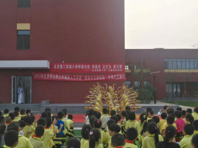 9月25日,北京市心灵之声残疾人艺术团来到北京第二实验小学怀柔分校,为全校师生带来了一场“民族文化进校园”文艺演出。