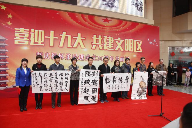 开幕式上,怀柔区学管中心主任李秀娥致辞。她说:“在党的十九大即将召开的日子,我们组织开展“喜迎十九大 共建文明区”笔会交流活动,对弘扬中华传统文化、传承书画翰墨精髓具有重要教育意义和纪念意义。”