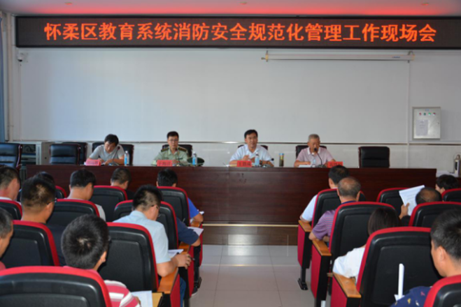 9月11日,区教委组织各基层单位主管安全工作领导召开教育系统消防安全规范化管理现场会,区教委学校安全管理办公室主任高铁松同志主持了会议。